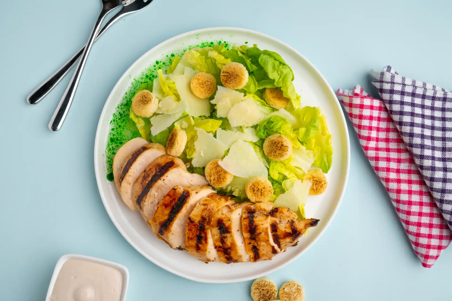Lettuce- Parmesan- Crouton – Caesar Dressing – Chicken