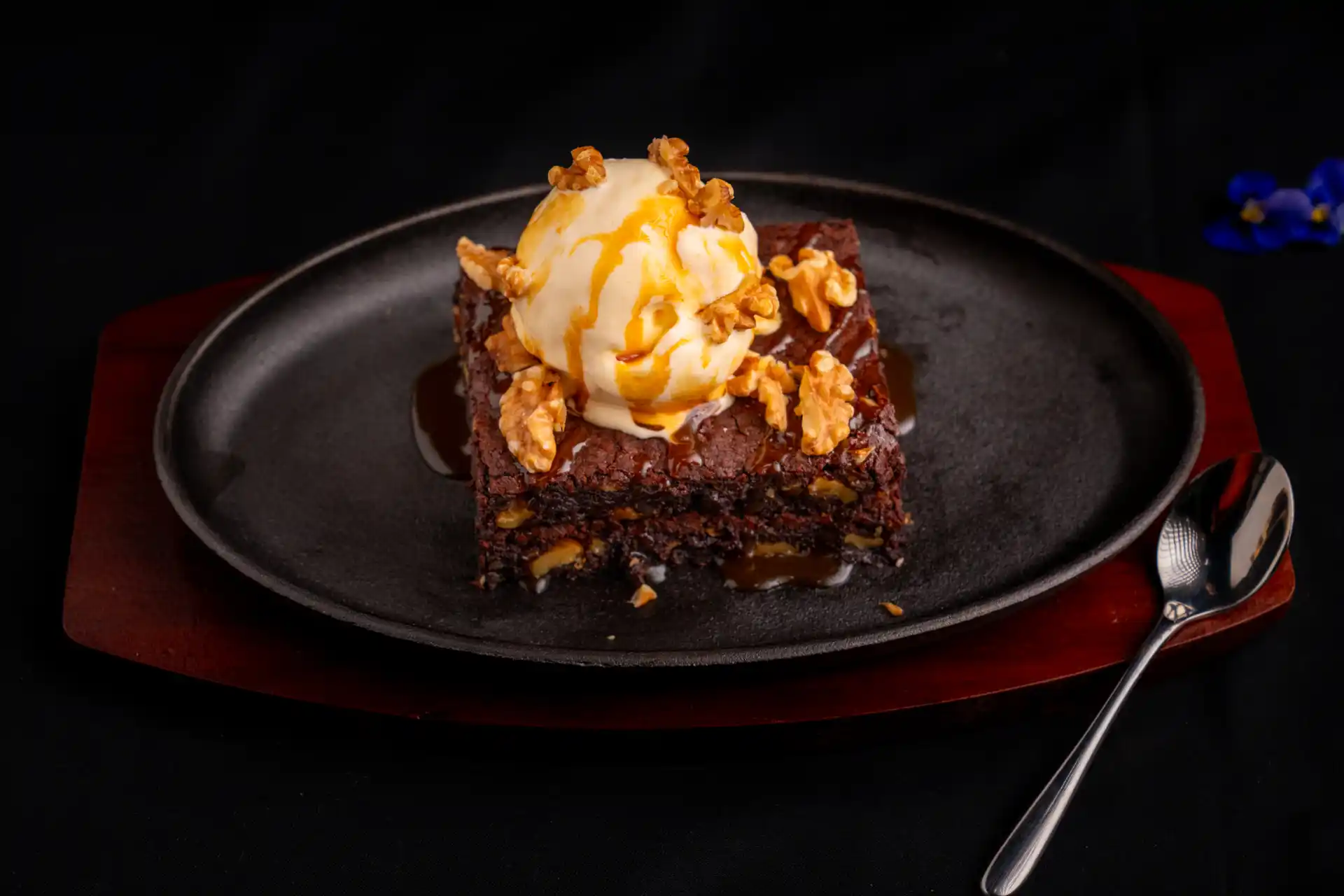 Chocolate, Walnut, Caramel Sauce, Vanilla Ice Cream
